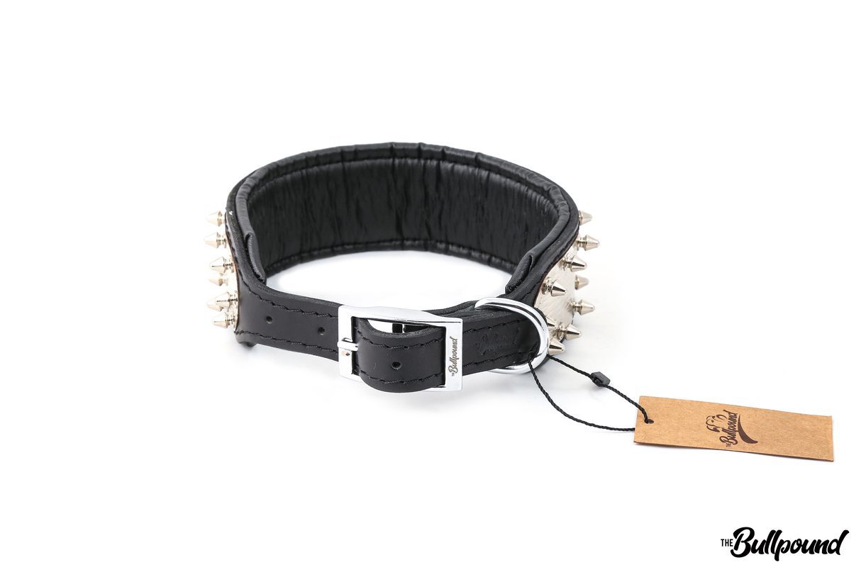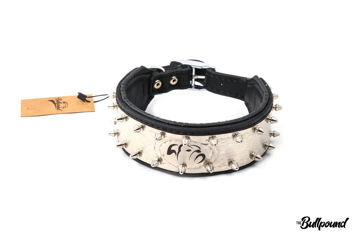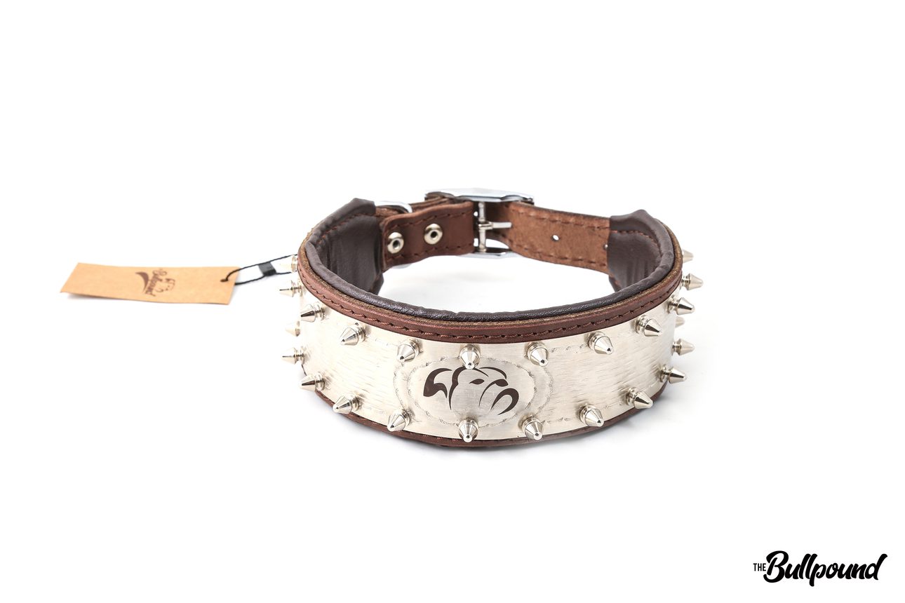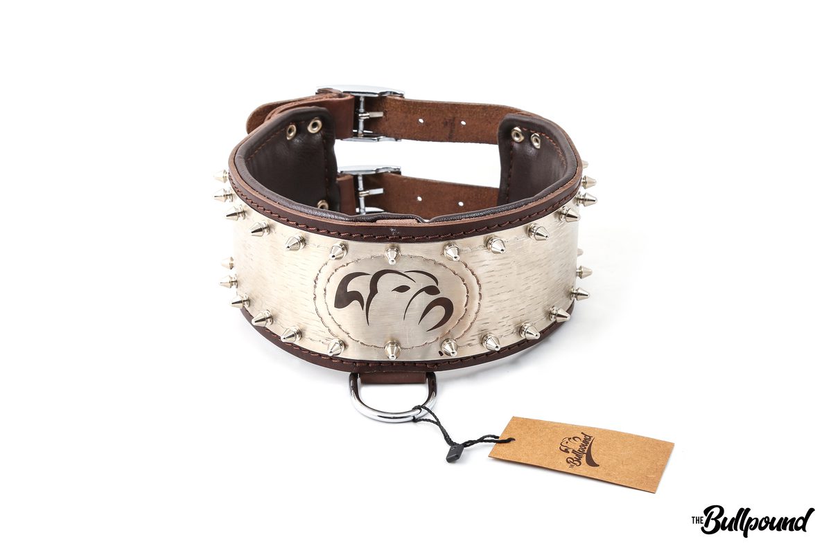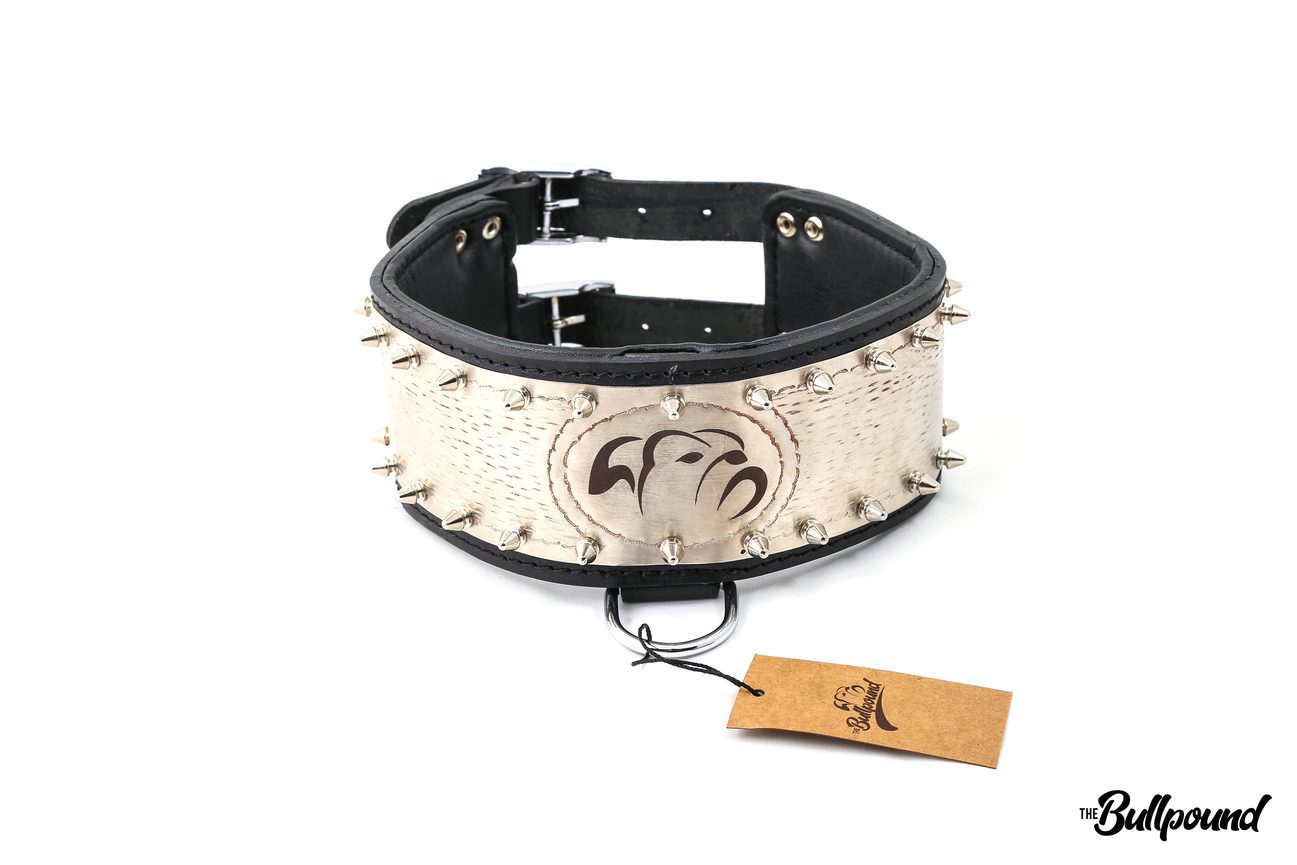 The Molly’s metal plate Spiked wide leather Dog Collar is a large dog breed collar: Length: 28 inches